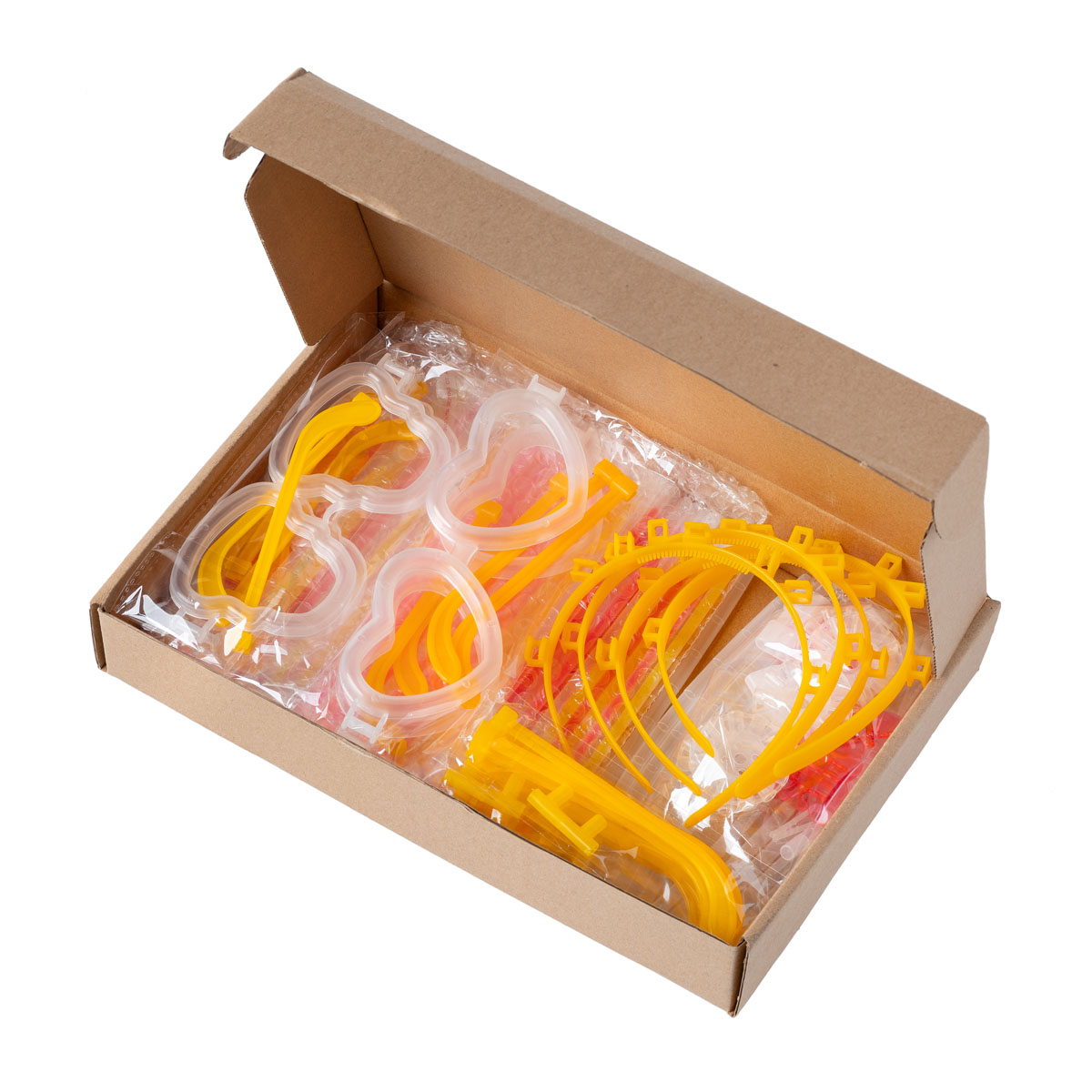 Met dit kleurrijke glowsticks feestpakket maak jij jouw verjaardag, themafeestje etc. nog feestelijker! Dit complete feestpakket bevat extra veel glowsticks in verschillende kleuren. Breek de staafjes en maak de leukste verlichte vormen met de meegeleverde accessoires en bevestigingsonderdelen. Van brillen tot haarbanden en nog veel meer, alles is mogelijk. Met een eenvoudige buiging van de glow sticks activeer je het gloeiende effect. De verlichting zorgt voor een kleurrijk en opvallend accent op ieder feest. Met dit glowsticks feestpakket maak jij elk feestje tot een succes!