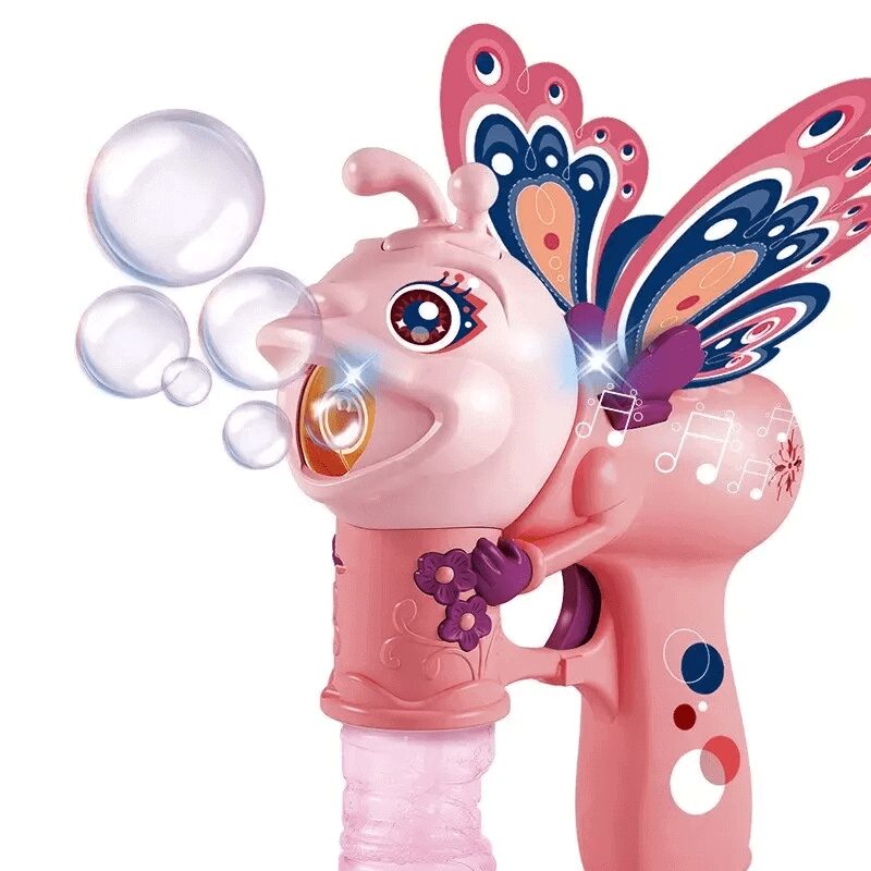 Met dit prachtige bellenblaas pistool in de vorm van een vlinder schiet jij tientallen bubbels tegelijkertijd de lucht in! Het pistool is gemaakt van kunststof en er zijn 2 potjes bellenblaas meegeleverd, zodat je hem gemakkelijk bij kunt vullen. Het pistool werkt met 3 AA-batterijen (niet inbegrepen). Bevestig eerst de vleugels aan de vlinder, schroef vervolgens het potje bellenblaas op het pistool en druk de hendel in. De lucht zal zich vullen met tientallen bellen i.c.m. een vrolijk muziekje en kleurrijke verlichting. Met dit vlinder bellenblaas pistool beleef jij urenlang speelplezier! Ook is het pistool erg leuk om mee te nemen naar jouw favoriete feestjes en festivals.