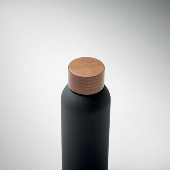 Deze zwarte RVS drinkfles met houten dop is de perfecte combinatie van stijl, gebruiksgemak en functionaliteit. Met zijn strakke matte afwerking en natuurlijke acaciahouten dop past deze fles bij elke moderne levensstijl, van werk en reizen tot sport en ontspanning. De fles heeft een royale inhoud van 700 ml, waardoor je altijd voldoende te drinken bij je hebt. Gemaakt van hoogwaardig roestvrij staal (90% gerecycled RVS en 10% RVS), biedt de fles een uitstekende kwaliteit en een lange levensduur. De rubberen coating zorgt voor een zachte, matte grip die comfortabel in de hand ligt en voorkomt dat de fles wegglijdt. Het enkelwandige ontwerp maakt de fles licht en compact, ideaal om mee te nemen in een tas of rugzak. De lekvrije schroefdop, afgewerkt met echt acaciahout, sluit perfect af zodat je drankje veilig blijft, zonder lekken of morsen. Daarnaast is de fles vaatwasserbestendig, waardoor reinigen eenvoudig en hygiënisch is. De gladde binnenzijde voorkomt nare geurtjes of smaken, zodat je dranken altijd fris blijven. Of je nu onderweg bent naar kantoor, een wandeling maakt of sport, deze RVS drinkfles is de ideale dorstlesser met een stijlvolle uitstraling. Dankzij het natuurlijke accent van het houten deksel straalt hij klasse uit, een echte blikvanger op elk bureau of in elke tas.