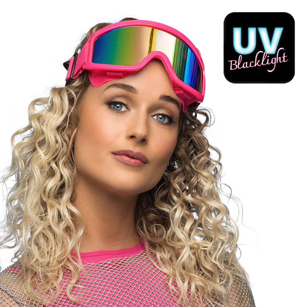 Maak je feestoutfit compleet met deze opvallende party skibril neon roze! Deze feestbril combineert een stoere, sportieve look met een felle neon kleur die oplicht onder UV-licht, perfect voor wie durft op te vallen. Of je nu een foute party, neonfeest, carnaval, après-ski party of festival bezoekt: met deze bril ben jij gegarandeerd het stralende middelpunt. De UV-reactieve roze kleur komt spectaculair tot leven onder blacklight, waardoor je bril letterlijk oplicht in het donker. De grote, reflecterende lens met regenboogtint geeft een futuristische uitstraling. De elastische verstelbare band en het lichtgewicht ontwerp maken de bril comfortabel om te dragen, zelfs tijdens lange feestnachten. De elastische band is eenvoudig aan te passen aan verschillende hoofdmaten en zorgt ervoor dat de skibril goed blijft zitten zonder te knellen. Combineer deze bril met een retro skipak, neon mesh top of andere felgekleurde accessoires om een opvallende en originele feestlook te creëren. Of je nu meedoet aan de polonaise, losgaat op een dancefestival of een 80’s of 90’s themafeest bezoekt, deze neon roze UV skibril maakt jouw outfit helemaal af. Een onmisbaar accessoire voor feestgangers die houden van kleur, stijl en aandacht!