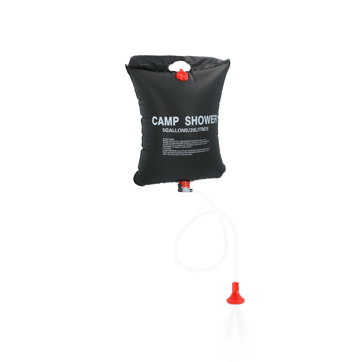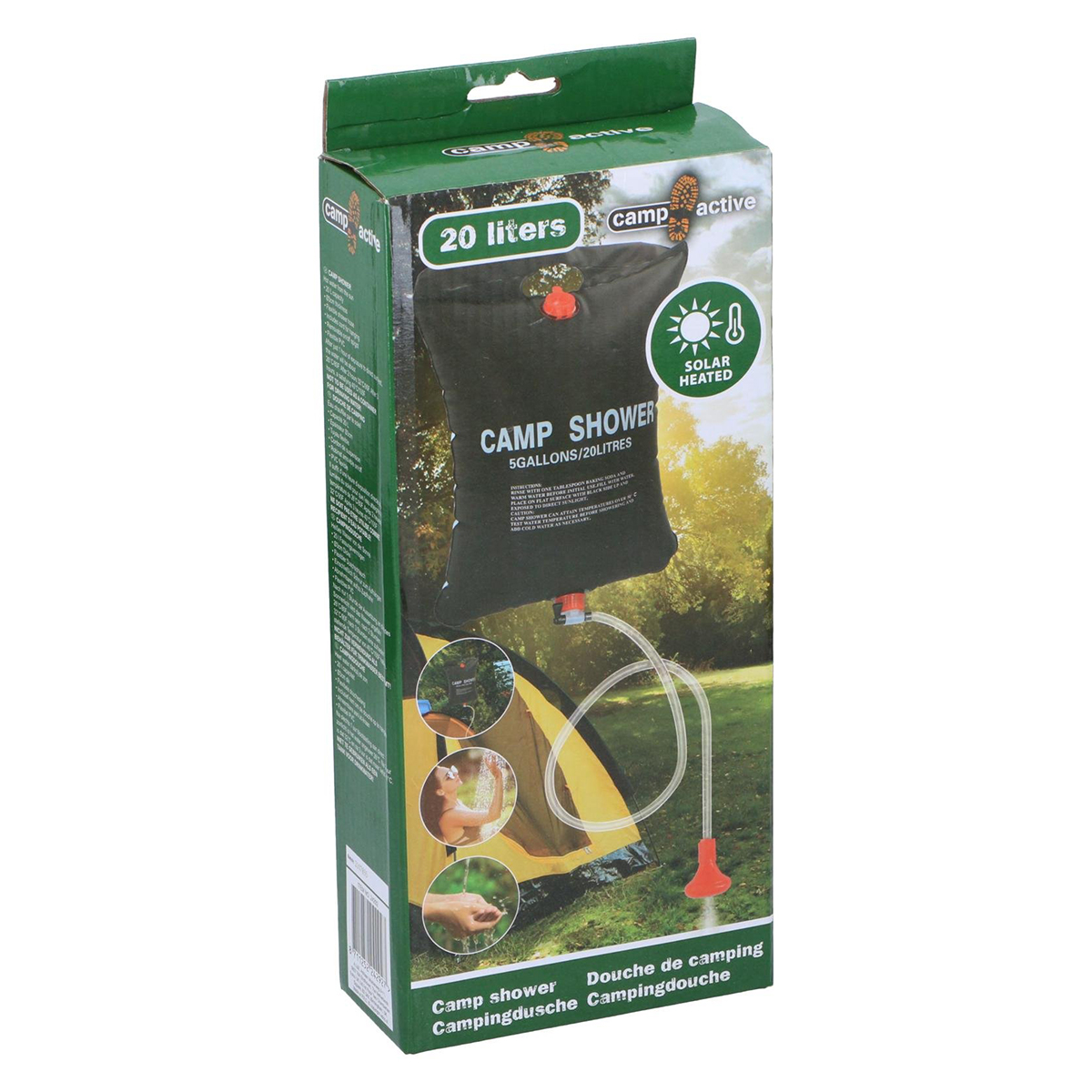 De Camp Active campingdouche 20 liter is dé oplossing voor een frisse en comfortabele douche op de festivalcamping! Met een inhoud van 20 liter heb je voldoende water voor meerdere douches, ideaal om je na een lange dag feesten op de festivalcamping weer helemaal op te frissen. Dankzij de zwarte buitenkant wordt het water op natuurlijke wijze door de zon verwarmd en kan het na 3 uur blootstelling aan zonlicht een temperatuur van ca. 40°C bereiken. Zo geniet je altijd van een warme douche zonder dat er elektriciteit of gas nodig is. De campingdouche is voorzien van een flexibele slang, een handige douchekop en een afneembare aan-/uitkraan, zodat je zelf eenvoudig de waterstroom regelt. Met het meegeleverde koord hang je de zak stevig op aan een boom, tent of constructie. Het compacte en lichtgewicht ontwerp maakt hem gemakkelijk mee te nemen in je festivalbagage of kampeerspullen. Naast festivals is deze douche ook perfect voor kampeervakanties, stranddagen of outdooractiviteiten. Met de Camp Active campingdouche 20 liter ben jij altijd verzekerd van een frisse start, zelfs midden op de festivalcamping!