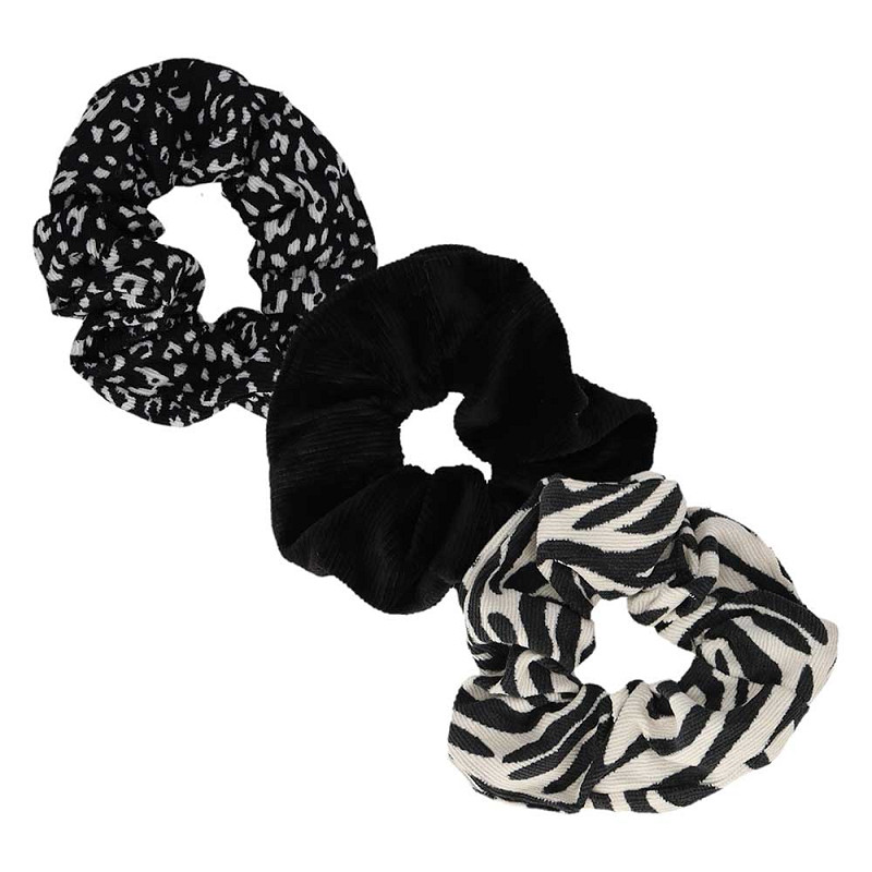 Sarlini scrunchie zebraprint set – Haarelastiek zwart/wit – 3 Stuks
