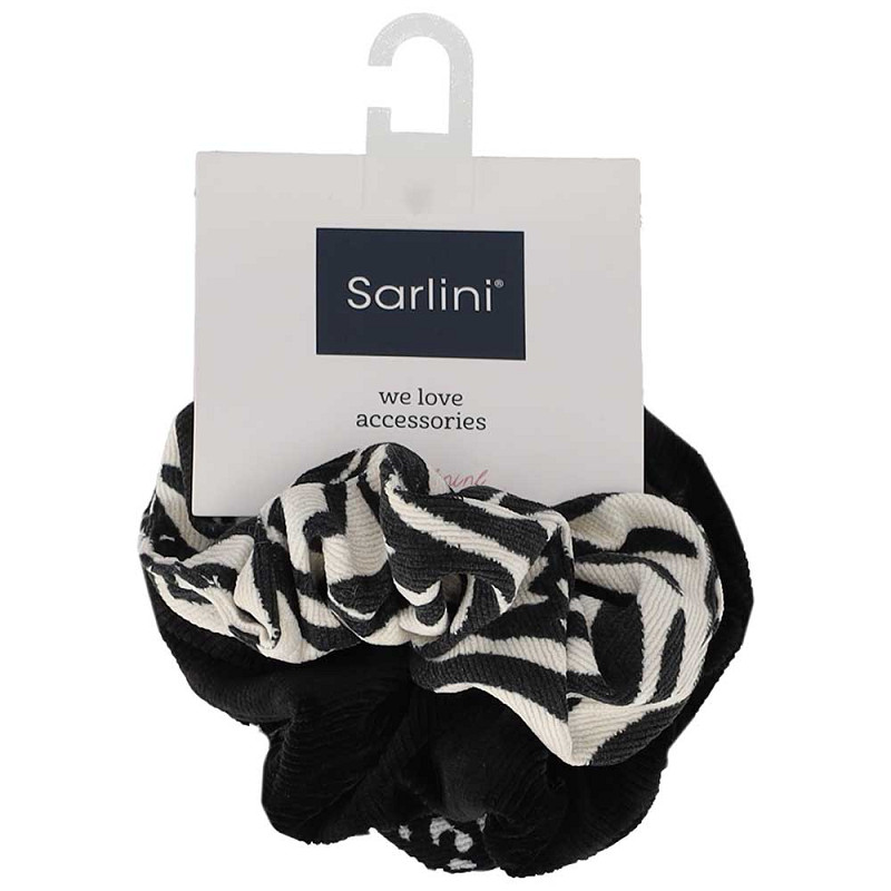 Deze Sarlini scrunchie set bevat drie stijlvolle haarelastieken met een trendy zebraprint design in zwart en wit. De scrunchies zijn gemaakt van polyester en bieden een comfortabele en stevige grip in het haar. Dankzij de zachte stof zijn ze vriendelijk voor het haar en helpen ze haarbreuk te verminderen. Ideaal voor het maken van een paardenstaart, knot of half opgestoken kapsel. De set van 3 scrunchies is perfect voor dagelijks gebruik of als modieus haaraccessoire.