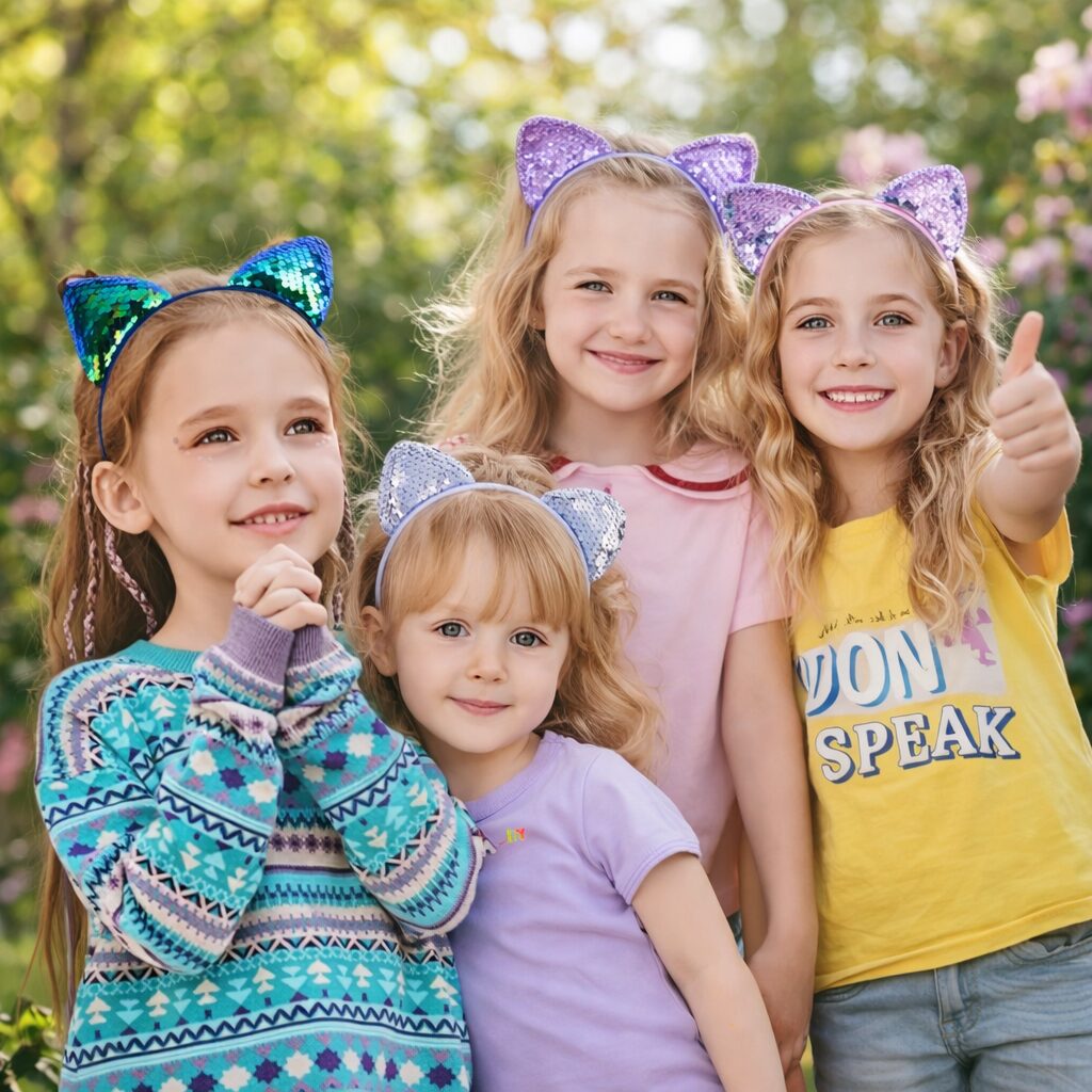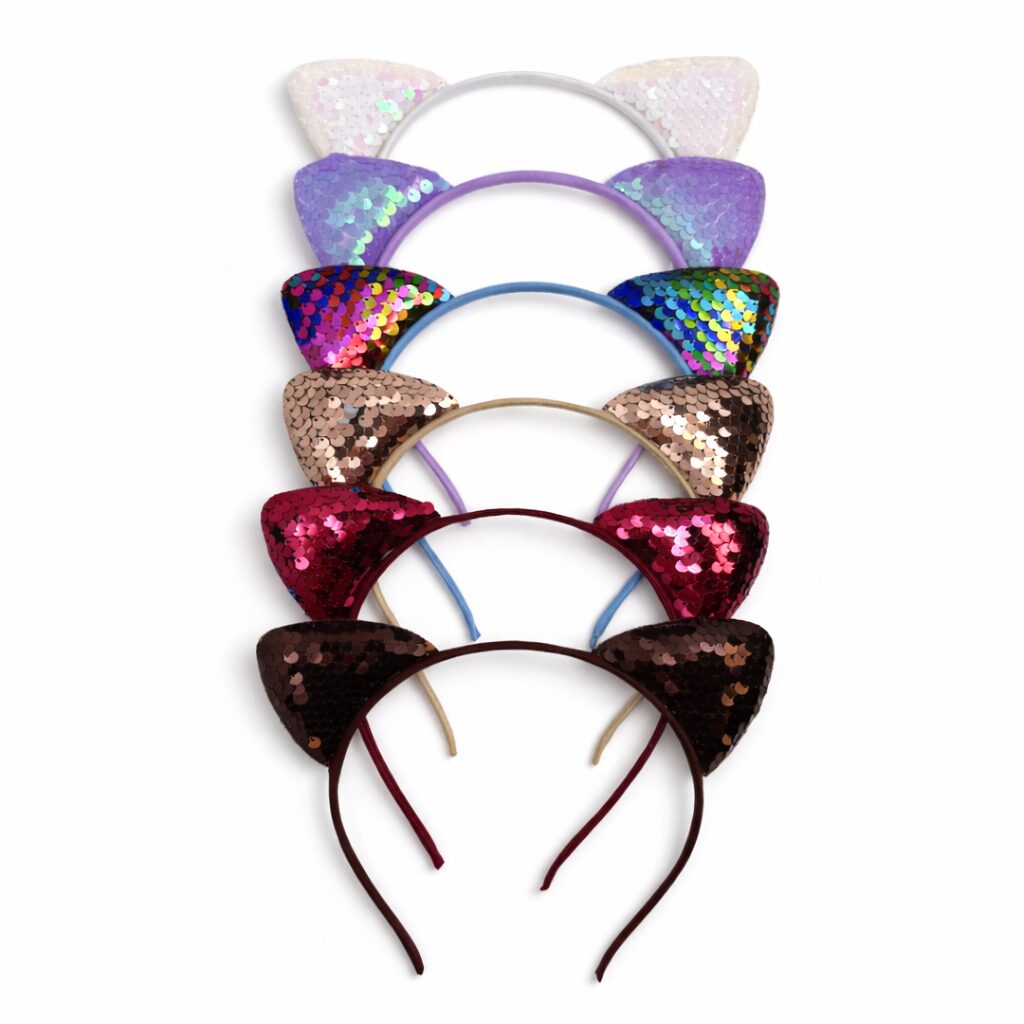 Kinder diadeem set met kattenoortjes – Glitter pailletten haarbanden – 6 stuks