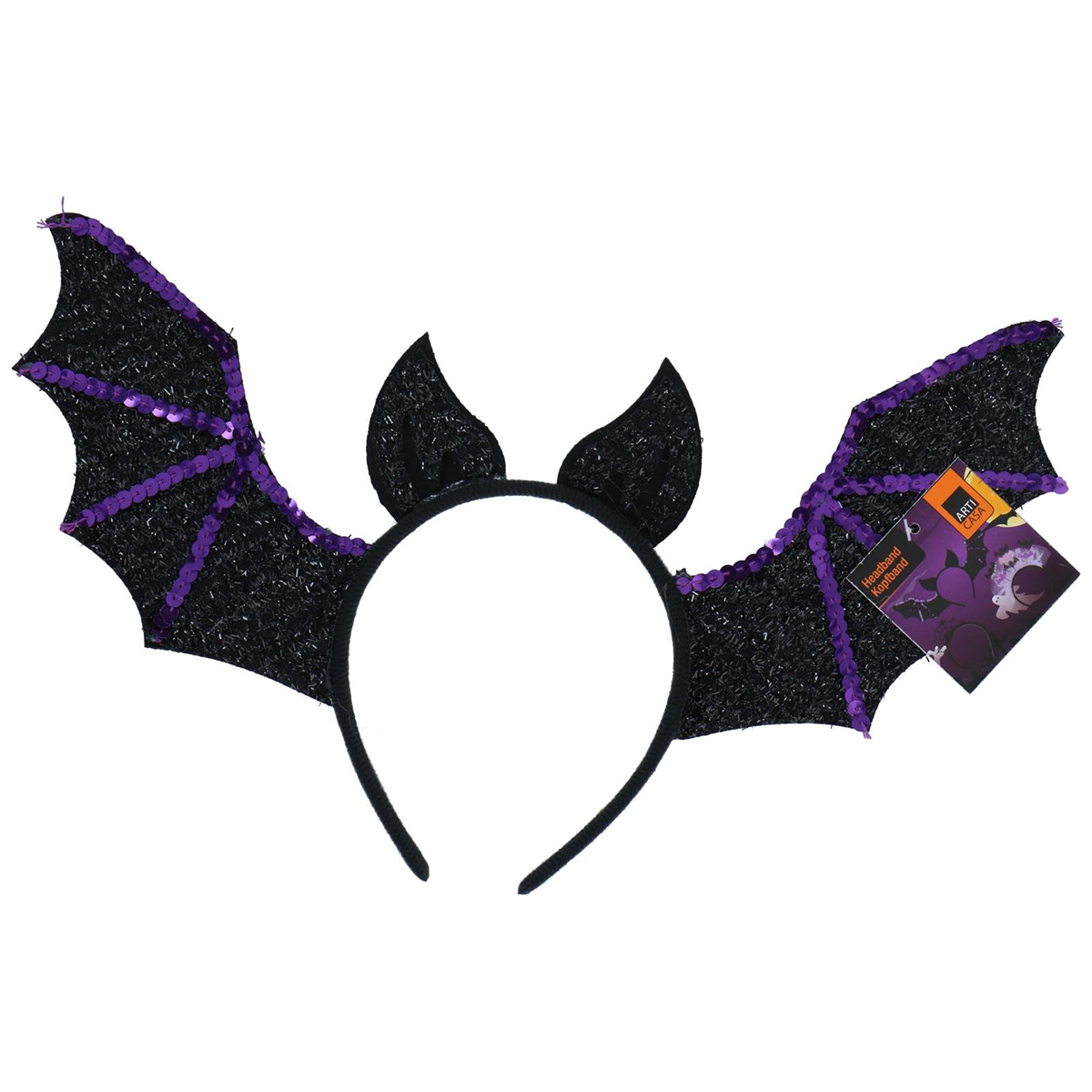 Geef je Halloween-look een speelse maar griezelige twist met deze Halloween vleermuis haarband! Deze unieke hoofdband is uitgevoerd met glinsterende zwarte vleermuisvleugels en is afgewerkt met paarse pailletten, zwarte steentjes en kleine vleermuisoren voor een opvallende uitstraling. Het ontwerp combineert een feestelijke glitterlook met een typisch Halloween thema, waardoor het een perfect accessoire is voor kinderen én volwassenen. De Halloween haarband is gemaakt van stevig maar flexibel materiaal, waardoor hij goed blijft zitten zonder te knellen. Dankzij het lichte gewicht is hij comfortabel om de hele avond te dragen tijdens feestjes, trick-or-treat tochten of een Halloween schoolfeest. Met zijn opvallende vleugels en glitters is de haarband ook leuk om te combineren met een vleermuis- of heksenkostuum voor een extra enge look. Durf te schitteren én te griezelen met deze unieke vleermuis haarband!
