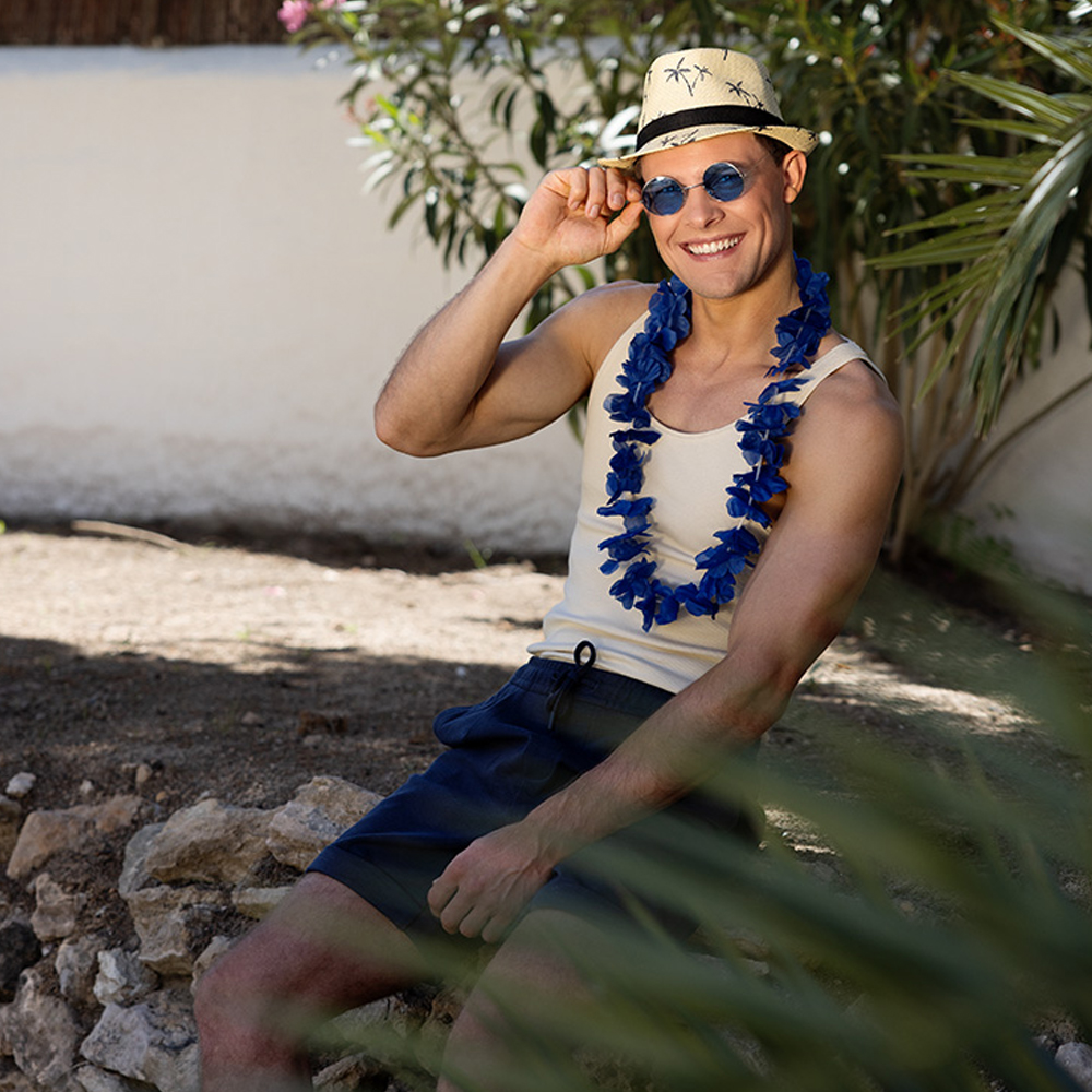 De palmboomprint geeft dit feesthoedje een speelse en tropische touch. Samen met de zwarte hoedenband zorgt dat voor een mooie balans tussen casual, feestelijk en trendy. Daardoor is deze zomerhoed ideaal voor een vakantie-outfit, een beach party, een festival look of een tropisch themafeest. Ook voor een relaxte tuinparty of een foute party met zomers thema is dit een leuke toevoeging.