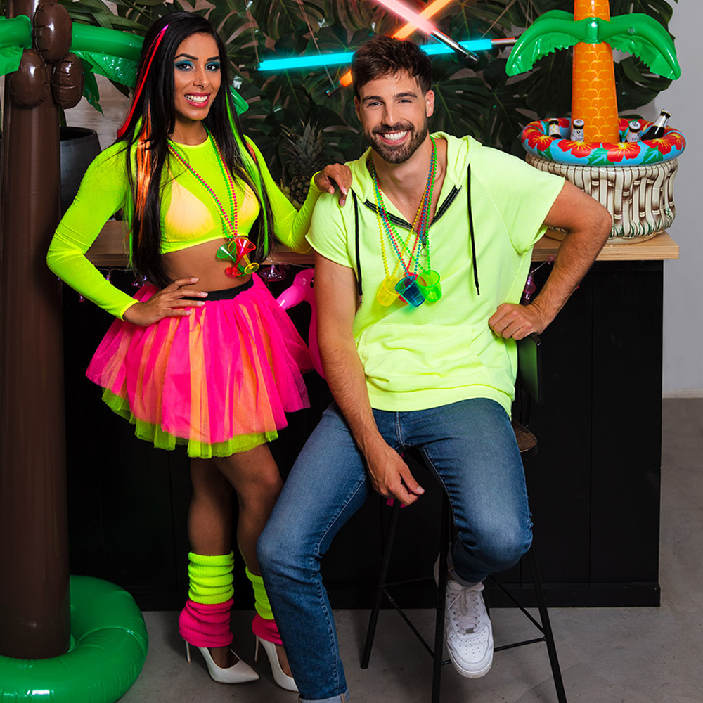 Maak je feestoutfit compleet met deze UV blacklight neon roze beenwarmers, een absolute must-have voor wie wil opvallen! Deze felgekleurde beenwarmers brengen direct energie, fun en een retro vibe naar elk evenement. Of je nu meedoet aan een 80’s discofeest, een blacklight party, Pride of carnaval, deze neon roze beenwarmers zorgen dat jij letterlijk en figuurlijk straalt. De opvallende neon roze kleur is niet alleen overdag een blikvanger, maar komt écht tot leven onder UV blacklight, ideaal voor dansvloeren, clubs of feestzalen met blacklightverlichting. Dankzij het rekbare, zachte materiaal sluiten de beenwarmers mooi aan zonder te knellen, waardoor ze comfortabel zijn voor langdurig gebruik. Je kunt ze zowel hoog optrekken als nonchalant oprollen voor een speelse look. Gemaakt van een ademende, elastische stof die zorgt voor optimaal draagcomfort. De beenwarmers passen bij vrijwel iedere outfit: combineer ze met sneakers, hakken of laarzen voor een complete feeststijl. Bovendien zijn ze eenvoudig met de hand te wassen, zodat je ze keer op keer kunt dragen. Kortom, deze neon roze UV blacklight beenwarmers zijn dé finishing touch voor elke feestoutfit, opvallend, comfortabel en helemaal in de sfeer van Pride en blacklight!