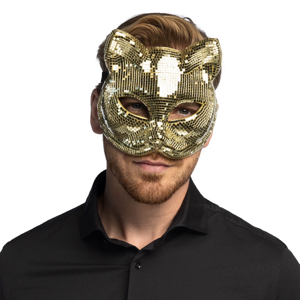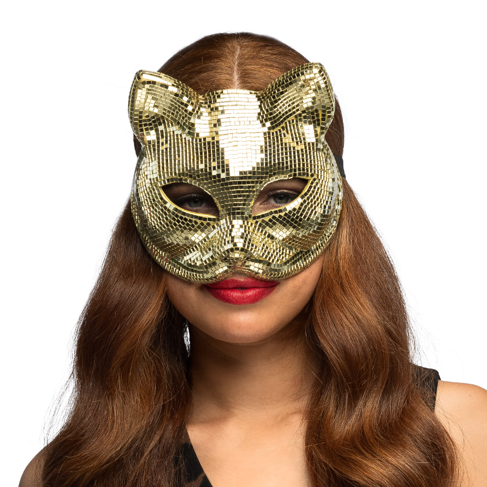 Met dit gouden disco kattenmasker maak je van iedere outfit direct iets bijzonders. De glanzende spiegelende mozaïeklook zorgt voor maximale reflectie en geeft het masker een echte disco uitstraling. Hierdoor is dit accessoire perfect voor iedereen die houdt van glitter, glamour en een feestelijke look die direct opvalt.