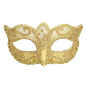 De warme gouden kleur geeft dit Venice masker een chique en feestelijke uitstraling. De verfijnde details zorgen voor een klassieke Venetiaanse look die perfect past bij glamoureuze jurken, stijlvolle kostuums en feestelijke accessoires. Het masker geeft je outfit direct meer karakter en zorgt voor een elegante finishing touch.