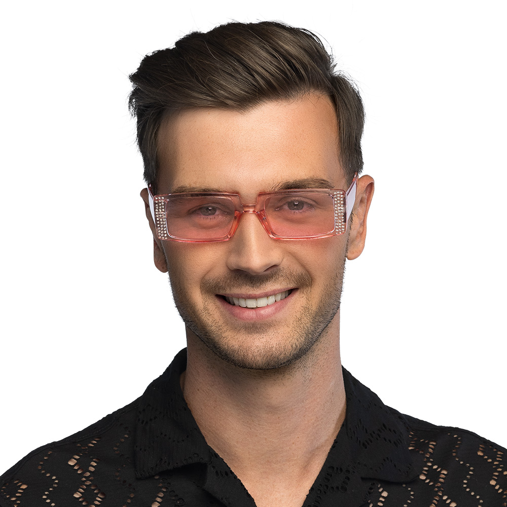 Partybril roze – Rechthoekige bril met roze glazen
