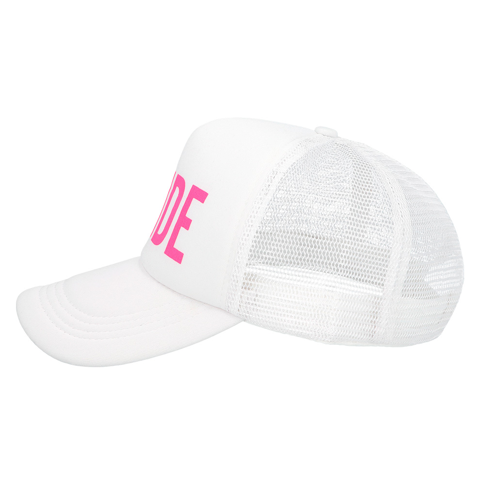 Deze witte Bride pet met roze opdruk is het perfecte accessoire voor iedere aanstaande bruid die tijdens haar vrijgezellenfeest extra in de spotlight mag staan. De grote roze letters op de voorkant maken in één oogopslag duidelijk wie er binnenkort gaat trouwen. Daarmee is deze pet niet alleen een leuke toevoeging aan de outfit, maar ook een feestelijke manier om de bride extra in het zonnetje te zetten.