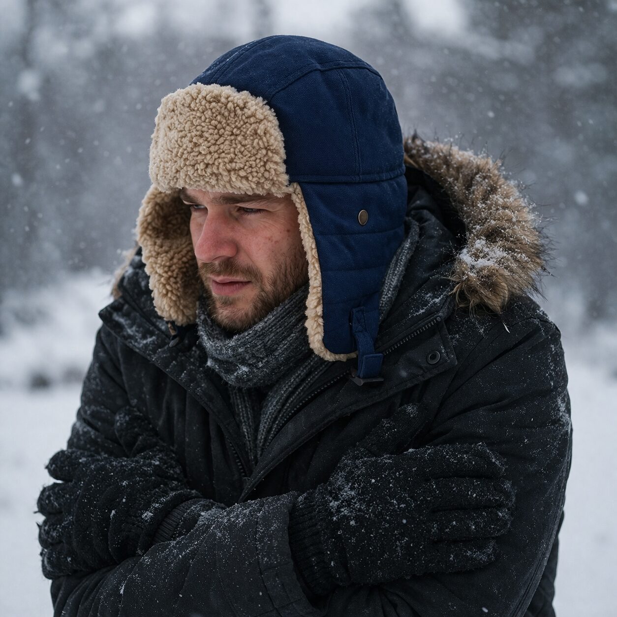 Russische Sherpa Muts – Warme Wintermuts met Oorbescherming – Navy Blauw
