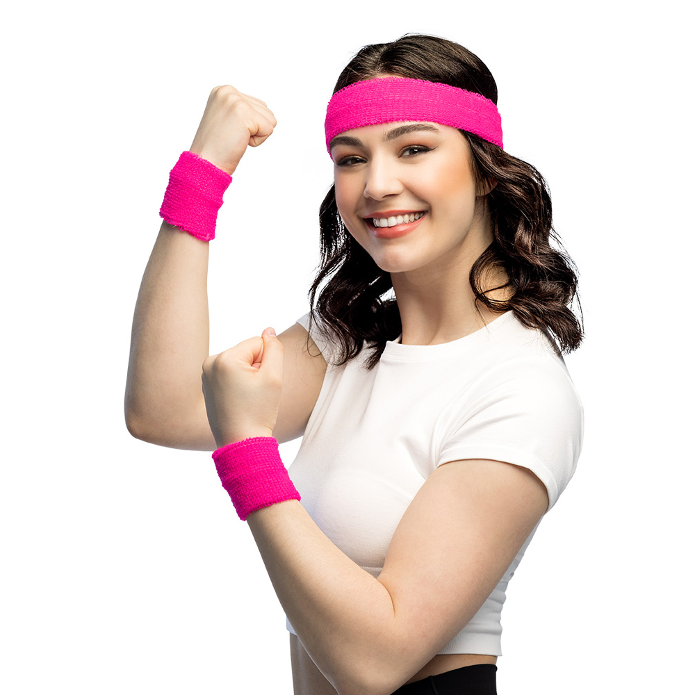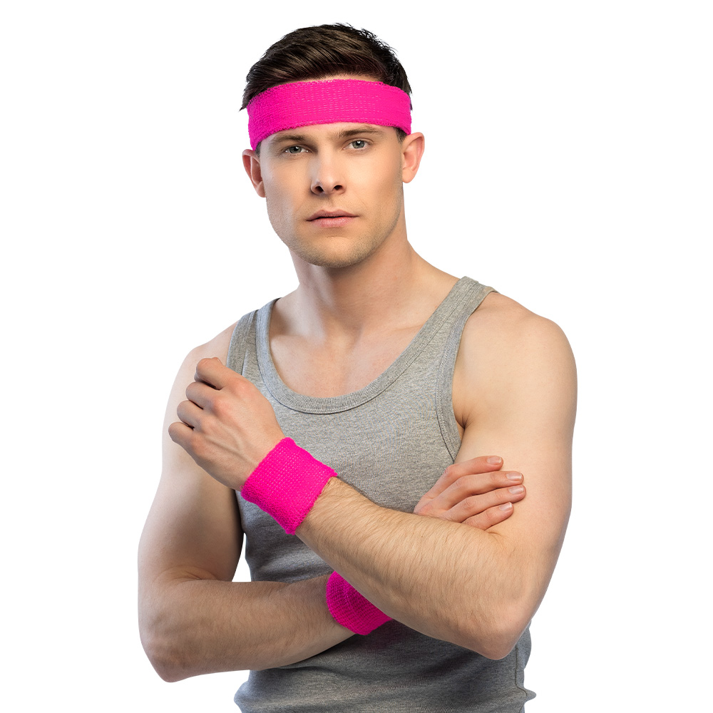 Met deze neon roze zweetband set maak je jouw sportoutfit of feestlook compleet. De set bestaat uit 1 hoofdband en 2 polsbandjes en is ontworpen voor zowel functioneel gebruik tijdens sport als voor opvallende outfits tijdens evenementen zoals Pride en festivals.